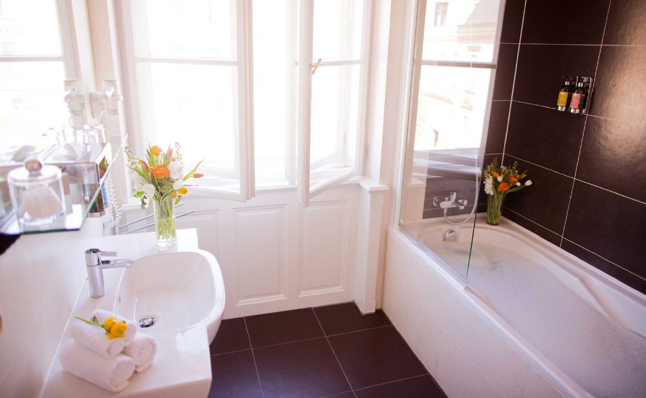 Les meilleures chambres de cet établissement, comme les chambres Deluxe ou certaines des suites, offrent une superbe vue sur le Château de Prague, grâce à de grands velux.
