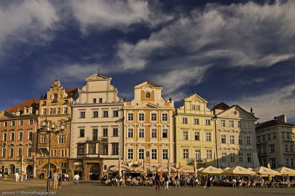 Mais l’histoire de la place elle-même n’en est pas moins passionnante, et reflète fidèlement les espoirs et les ambitions de chaque époque. Sa création, en tant que croisement de routes diverses, est liée à la naissance de la ville de Prague elle-même. Son aspect ne se stabilise que progressivement : les maisons romanes qui ont pu être conservées témoignent du fait qu’elle n’a pu acquérir sa taille actuelle qu’au XIIème siècle au plus tard. Le côté Sud de la place est bordé de magnifiques hôtels particuliers qui rappellent l’essor de la ville aux XIIIème et XIVème siècles. Et leurs façades richement décorées dans les styles Renaissance, baroque et classique prouvent bien qu’aux siècles suivants, les bourgeois de Prague n’avaient rien perdu de leur richesse et de leur assurance.